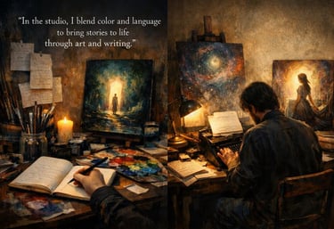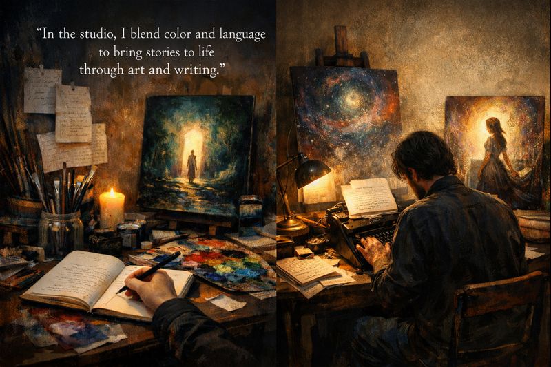 At studio vibes, I blend colors and words, crafting stories that live on canvas and page alike.