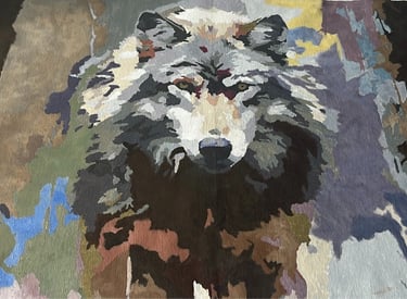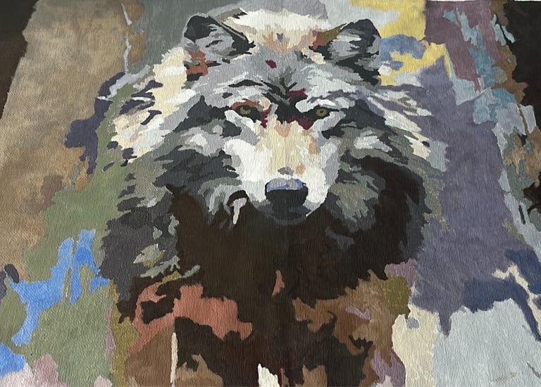 The wolf's shape appears amid a colorful storm, hinted at but not clear.